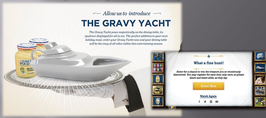 Gravy boats simply don’t cut the mustard when it comes to dijon gravy. Thus, was born the Gravy Yacht: a real, live, winnable dining piece from Grey Poupon.